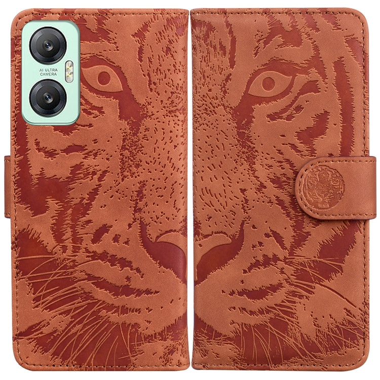 Funda de Cuero para Infinix Hot 20S con Estampado de Tigre en Relieve (Marrón)