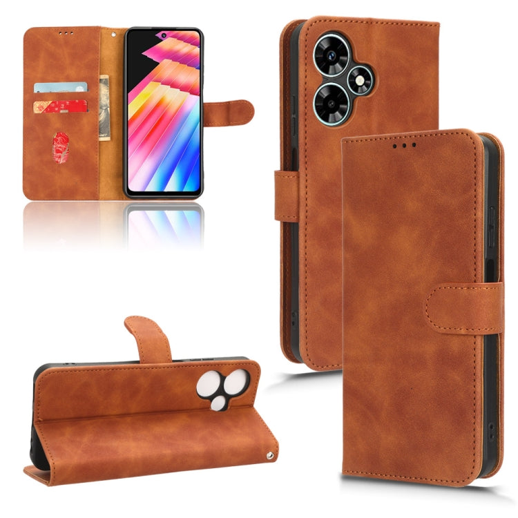 Funda Flip de Cuero Skin Feel Magnética para Infinix Hot 30 Play (Marrón)
