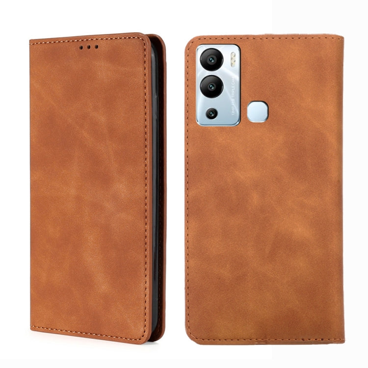 Funda de Cuero Skin Feel Magnetic Horizontal para Infinix Hot 11 Ru (Marrón Claro)