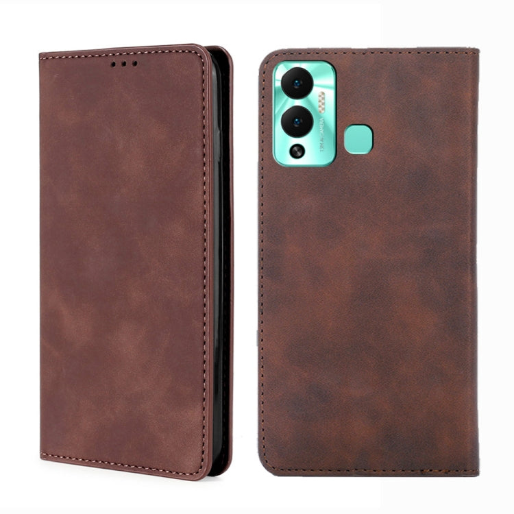 Funda de Cuero para Infinix Hot 11 Ru Versión Skin Feel Magnetic Horizontal Flip (Marrón Oscuro)