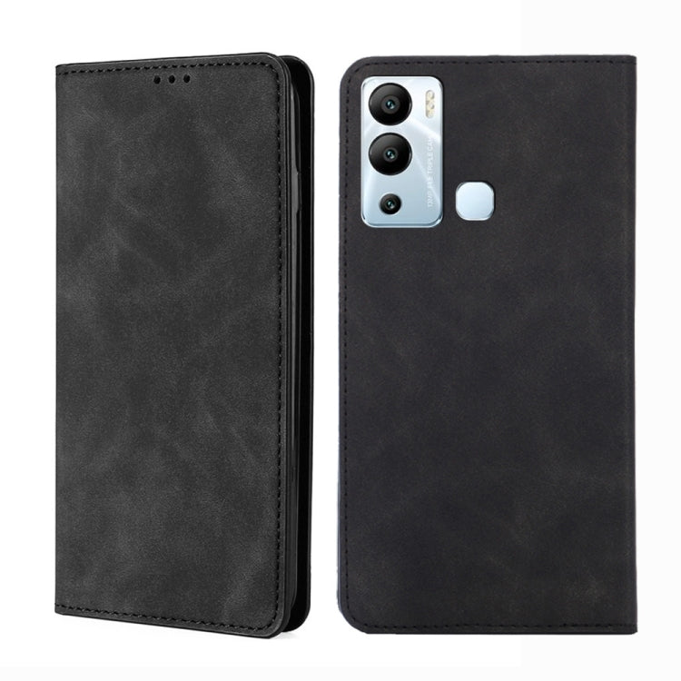 Funda para Infinix Hot 20 4G Skin Feel Tapa Horizontal Magnética de Cuero (Negro)