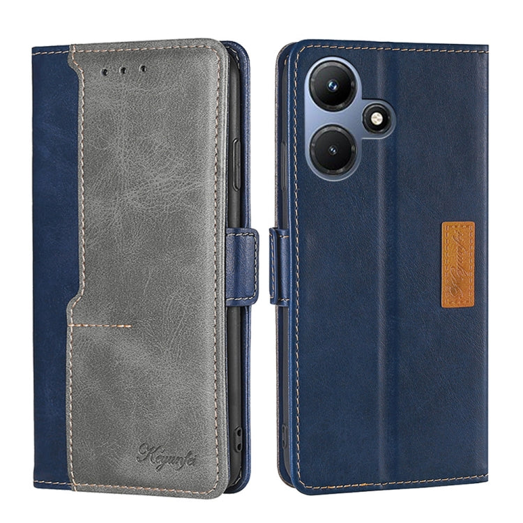 Caja de Teléfono de Cuero para Infinix Hot 30I 4G con Hebilla Lateral (Azul + Gris)