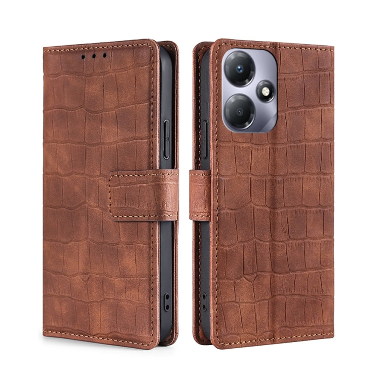 Funda de Cuero Infinix Hot 30 Play 4G Skin Feel Cocodrilo con Cierre Magnético (Marrón)
