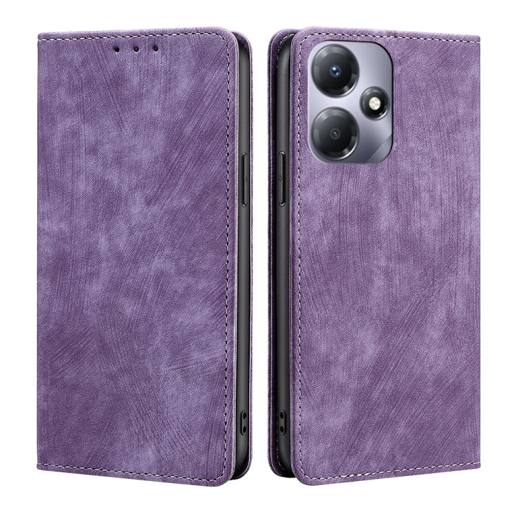 Funda de Cuero Magnética para Infinix Hot 30 Play 4G con Rfid y Cepillo Antirrobo (Púrpura)