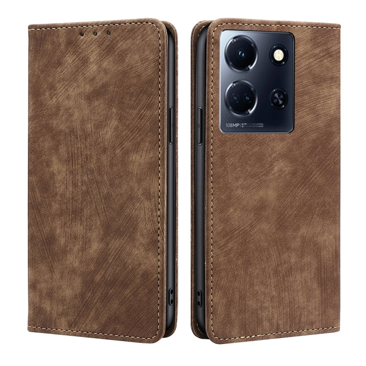 Funda de Cuero Magnética para Infinix Note 30 5G con Rfid y Cepillo Antirrobo (Marrón)