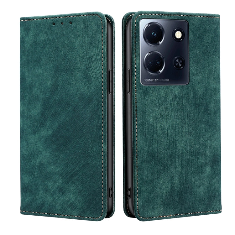 Funda de Cuero Magnética para Infinix Note 30 5G con Rfid y Cepillo Antirrobo (Verde)
