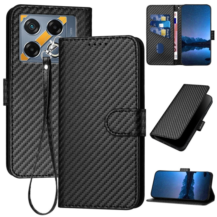 Funda de Cuero para Infinix Gt 20 Pro Yx0070 con Hebilla de Fibra de Carbono y Cordón (Negro)