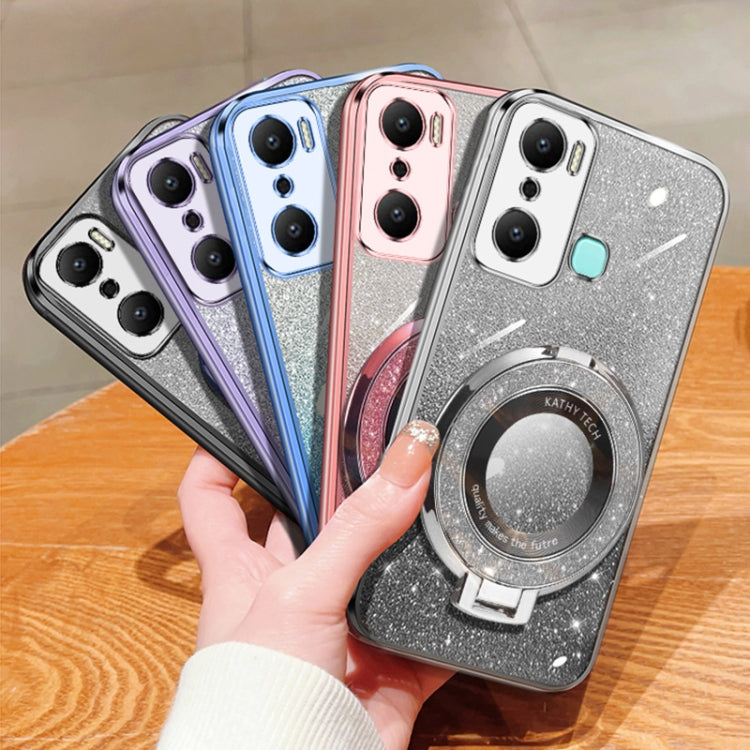 Funda de TPU con Soporte Redondo y Purpurina Degradada Chapada Vip para Infinix Note 30 (Plateada)