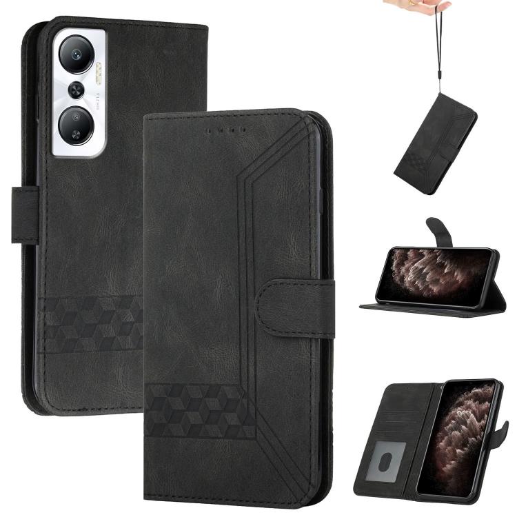 Funda de Cuero con Tapa y Diseño Cúbico para Infinix Hot 50 Pro 4G (Negra)