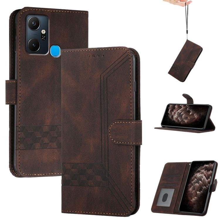 Funda de Cuero con Tapa Cúbica para Teléfono Infinix Smart 6 Plus (Marrón)
