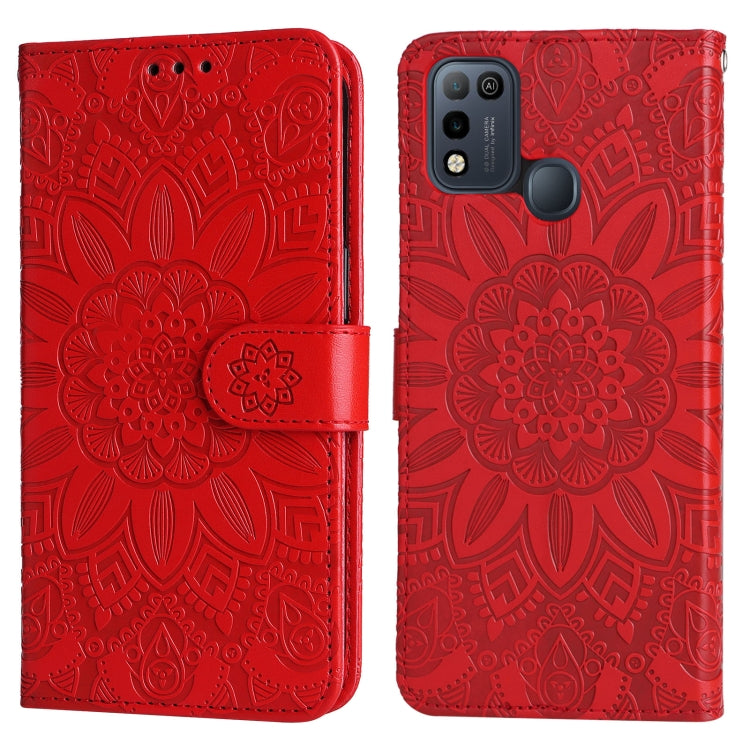 Estuche para Infinix Hot 11S Nfc de Cuero con Estampado de Girasol en Relieve (Rojo)