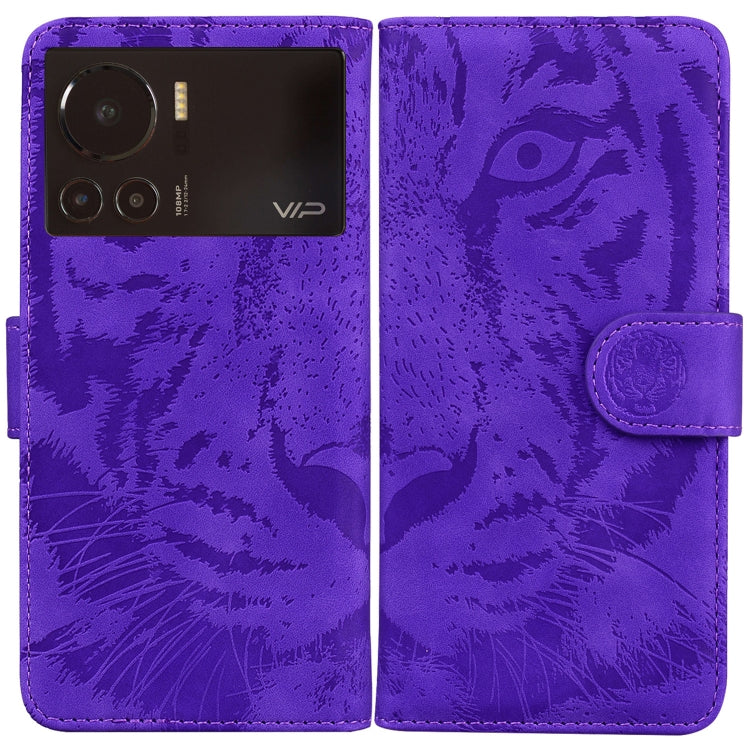 Funda de Cuero para Infinix Note 12 Vip con Tapa Horizontal y Patrón Tiger Embossing (Púrpura)
