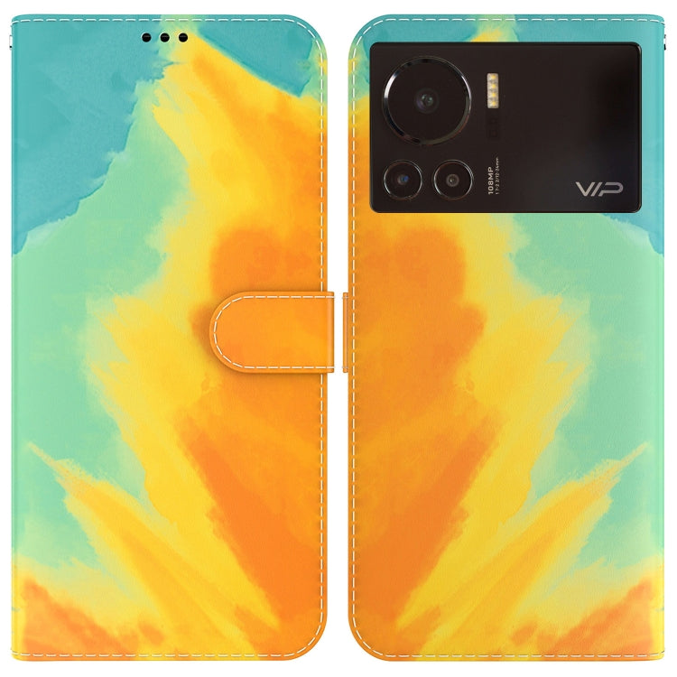 Funda de Cuero para Infinix Note 12 Vip con Tapa Horizontal y Patrón Acuarela (Verde Cian)
