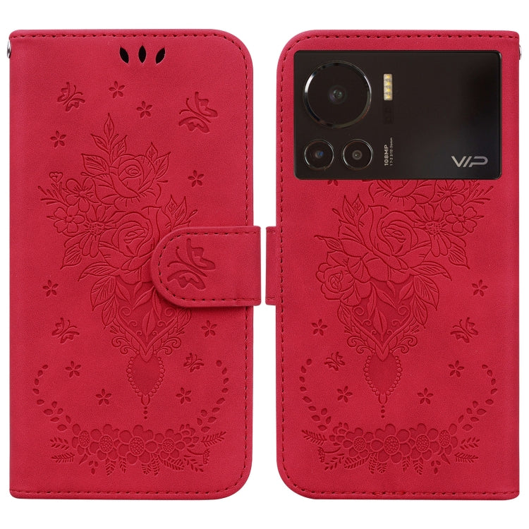 Estuche para Teléfono Infinix Note 12 Vip Butterfly Rose Cuero en Relieve (Rojo)