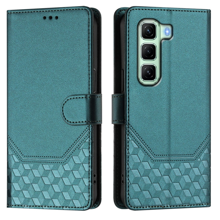 Funda de Cuero Rfid con Relieve en Panal para Infinix Hot 50 4G (Verde Pavo Real)