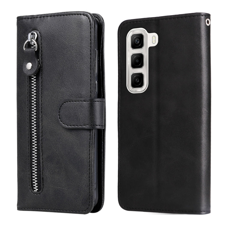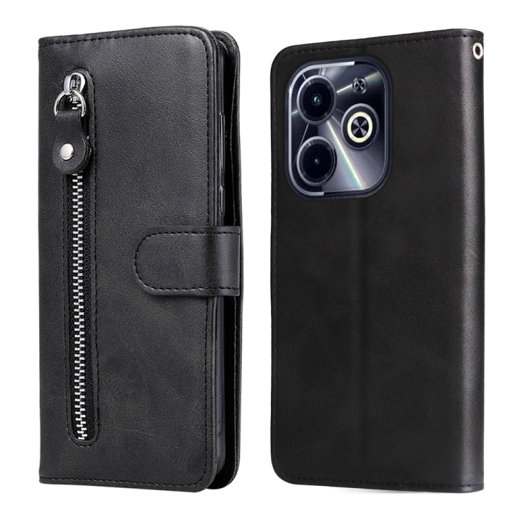 Funda de Piel con Textura de Becerro y Cremallera para Infinix Hot 50I Smart 9 (Negra)