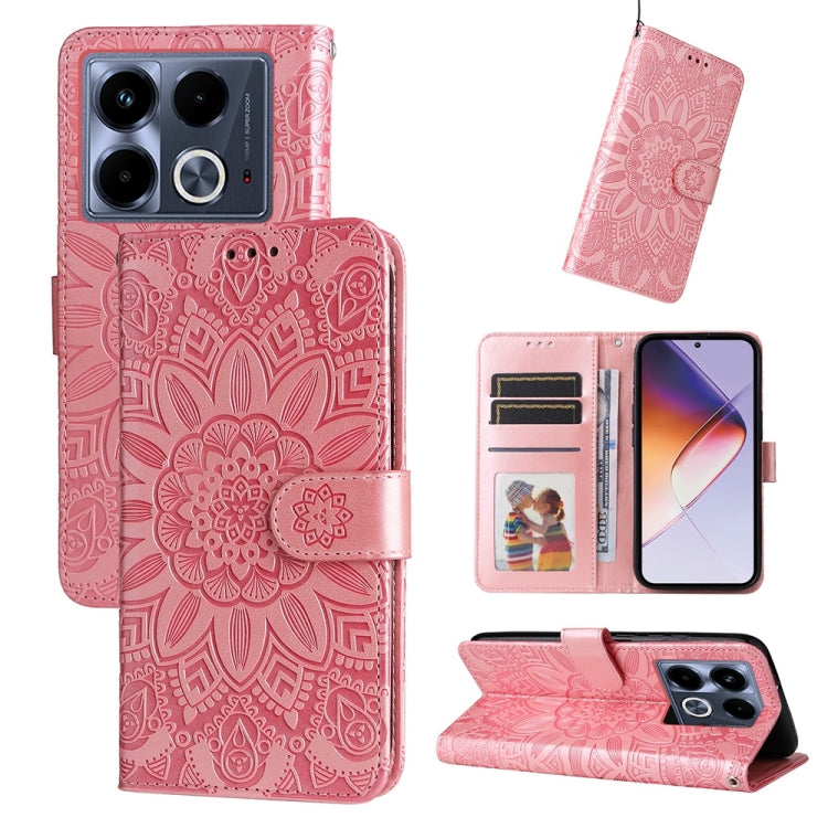 Funda de Cuero con Estampado de Girasoles en Relieve para Infinix Hot 40 y Hot 40 Pro (Rosa)