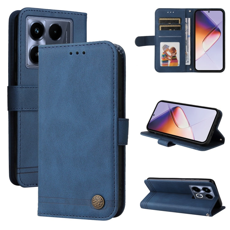 Funda de Cuero con Botones de Metal y Diseño Árbol de la Vida para Infinix Note 40 4G (Azul)