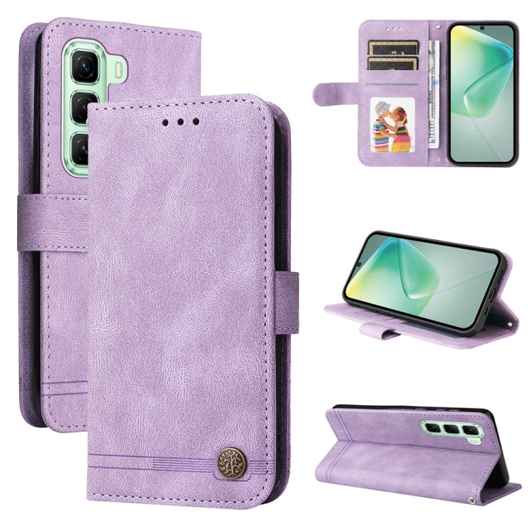 Funda de Cuero con Botones de Metal y Árbol de la Vida para Infinix Note 40 Pro 4G/5G/Pro+ (Morado)