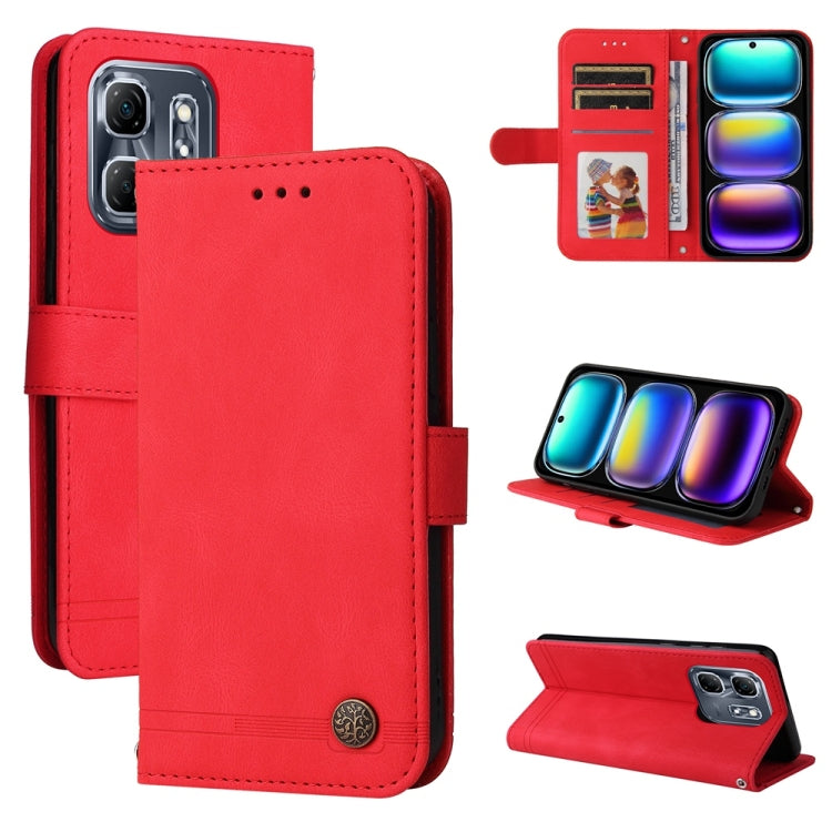 Funda de Cuero con Botones de Metal y Árbol de la Vida para Infinix Hot 40I (Rojo)