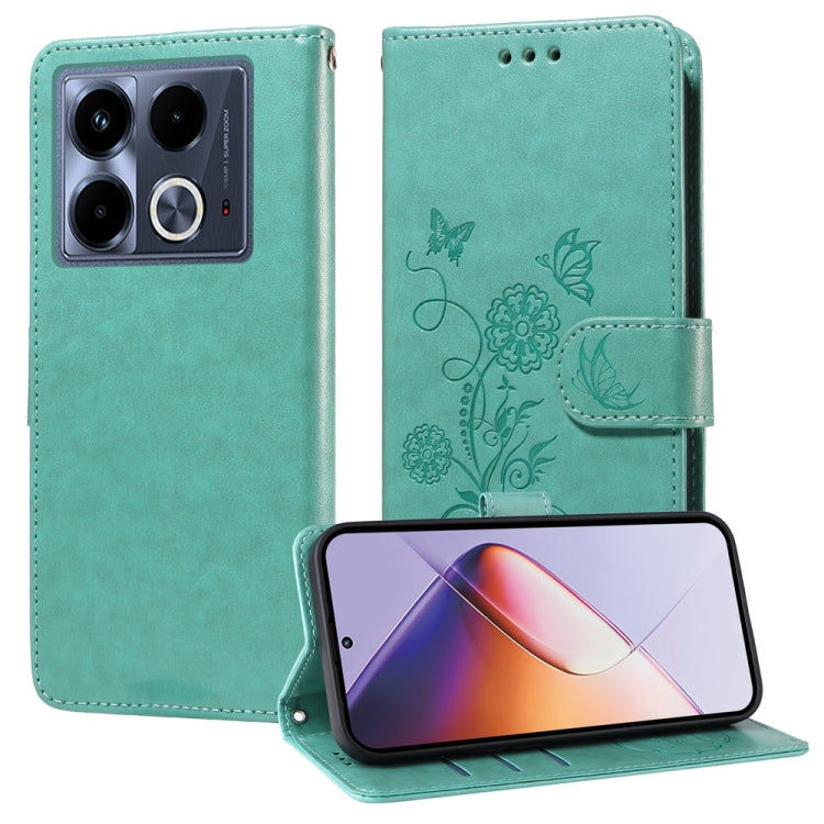Funda de Cuero para Infinix Zero 40 4G/5G con Diseño de Mariposas y Flores en Relieve (Verde)