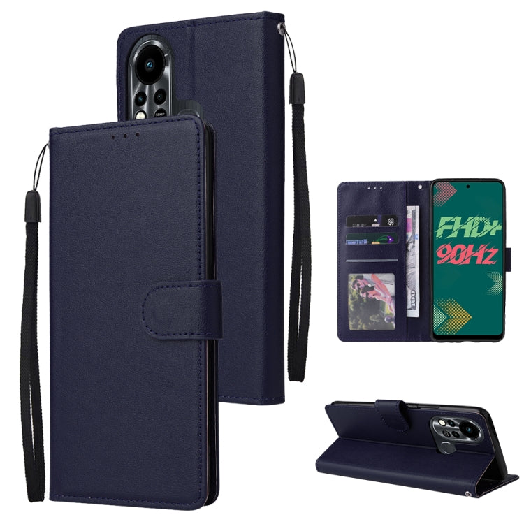 Estuche de Cuero para Infinix Smart 5 con Tapa Horizontal y 3 Ranuras para Tarjetas (Azul Marino)