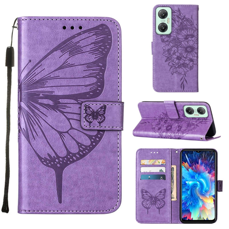 Estuche para Infinix Smart 7 X6515 de Cuero con Tapa de Mariposa en Relieve (Púrpura)
