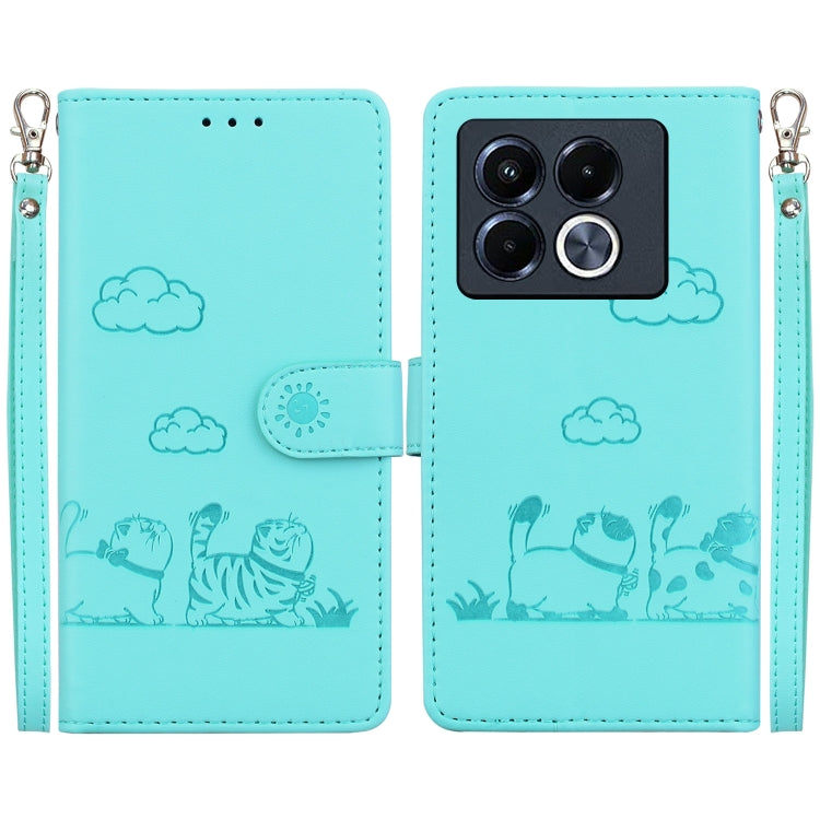 Funda de Cuero Rfid para Infinix Note 40 5G con Diseño de Gatos (Verde)