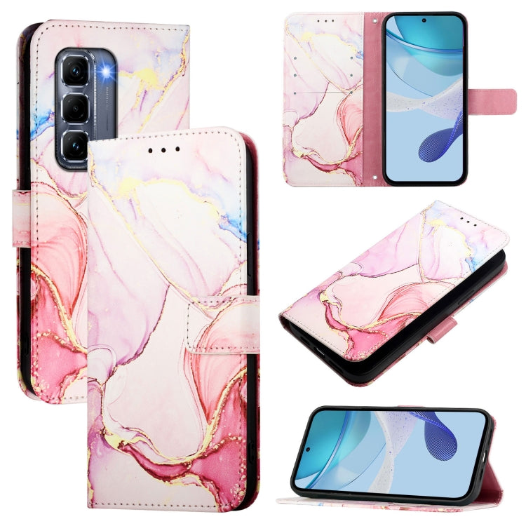 Funda de Cuero con Tapa y Diseño Mármol para Infinix Hot 50 Pro+ 4G Pt003 (Oro Rosa)