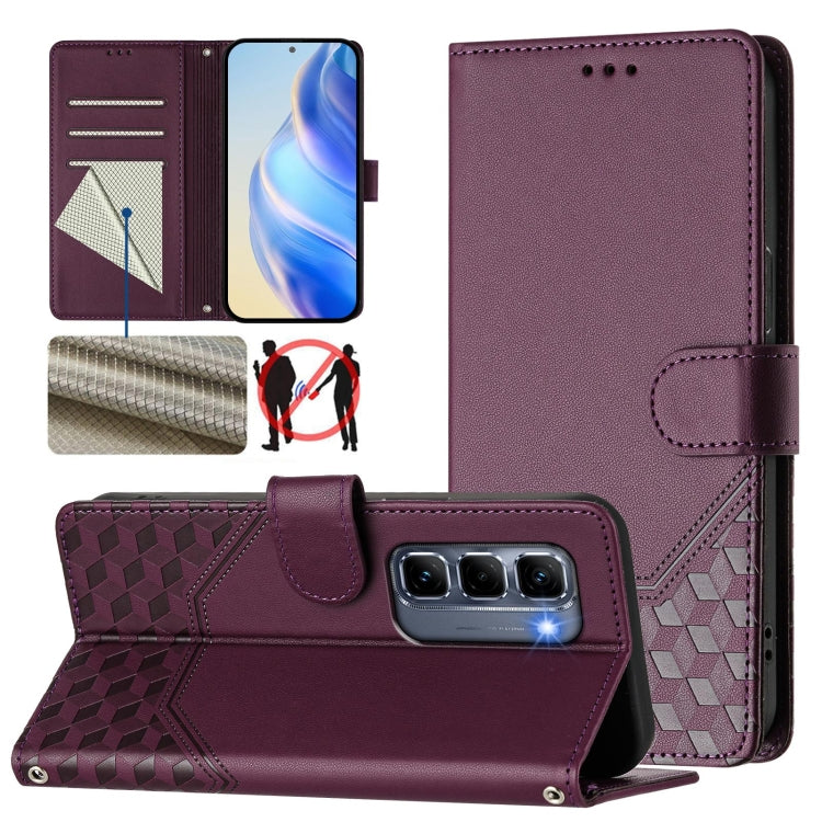 Funda de Cuero Rfid con Relieve en Panal para Infinix Hot 50 Pro+ 4G (Violeta)