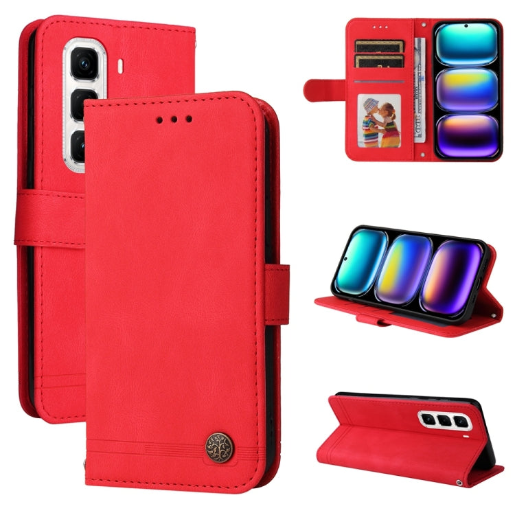 Funda de Cuero con Textura de Becerro y Hebilla para Infinix Hot 50 Pro+ 4G (Rojo)
