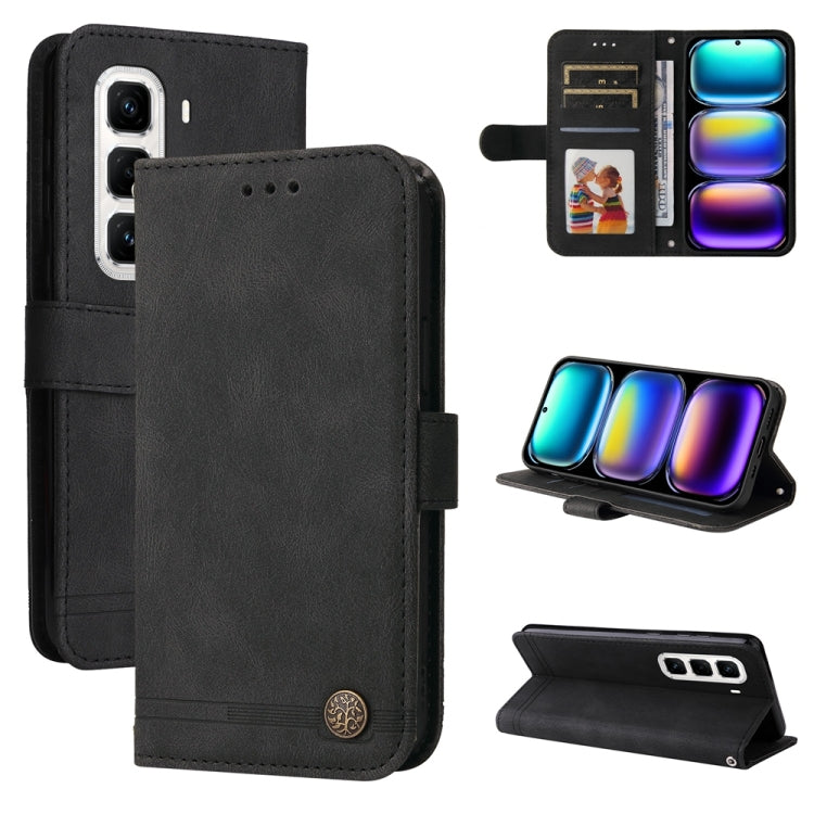 Funda de Cuero con Botones de Metal y Diseño Árbol de la Vida para Infinix Hot 50 Pro+ 4G (Negro)