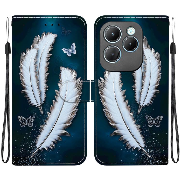Funda de Cuero con Dibujo y Textura de Cristal para Infinix Hot 40/40 Pro (Plumas Mariposas Blancas)