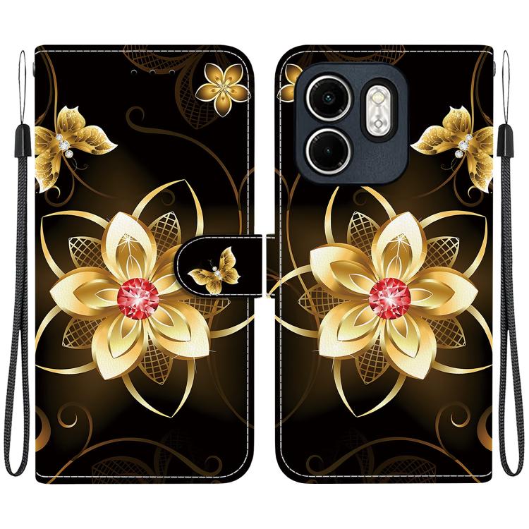 Funda de Cuero para Infinix Hot 50I Smart 9 con Dibujo de Colores y Textura de Cristal (Flor Dorada)