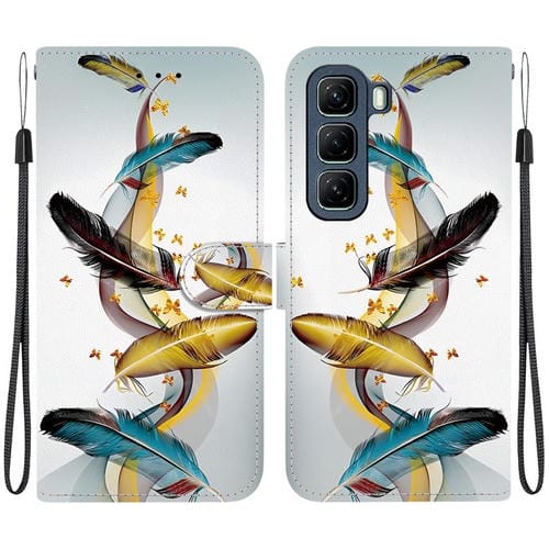 Funda de Cuero con Dibujo y Textura de Cristal para Infinix Hot 50 5G (Plumas de Mariposa Doradas)