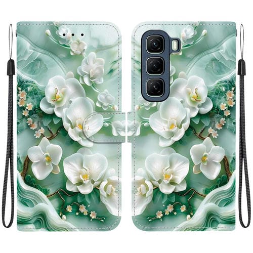 Funda de Cuero para Infinix Hot 50 5G con Dibujo de Colores y Textura de Cristal (Flores de Jade)