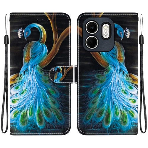 Funda de Cuero Infinix Hot 50I Smart 9 con Dibujo de Colores y Textura de Cristal (Pavo Real)
