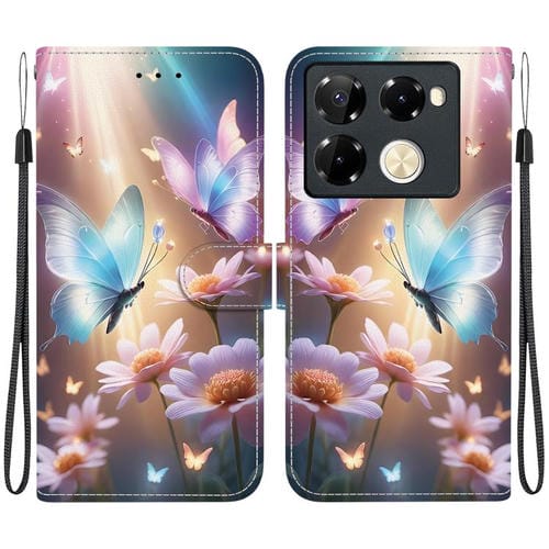 Funda de Cuero para Infinix Note 40 4G con Dibujo de Colores y Textura de Cristal (Mariposas Azules)