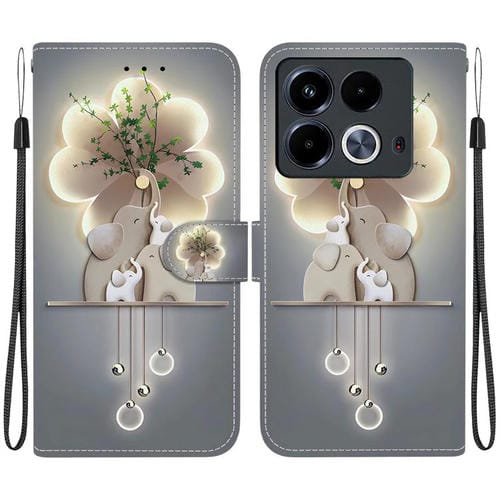 Funda de Cuero para Infinix Note 40 4G con Dibujo de Colores y Textura de Cristal (Elefantes)