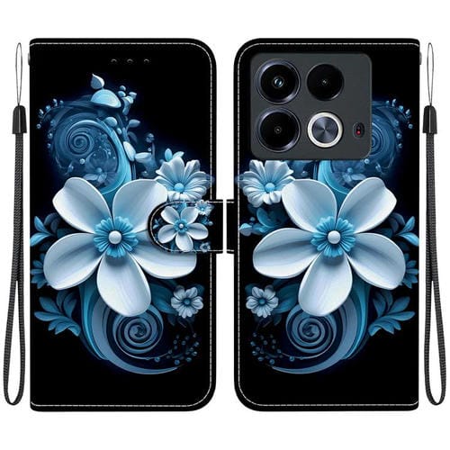 Funda de Cuero con Dibujo y Textura de Cristal para Infinix Note 40 Pro 4G/5G/Pro+ (Orquídea Negra)