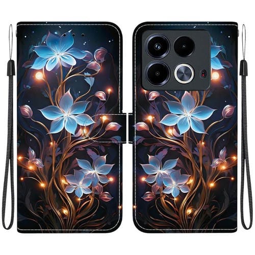 Funda de Cuero con Dibujo y Textura de Cristal para Infinix Note 40 4G (Flor de Linterna Pequeña)