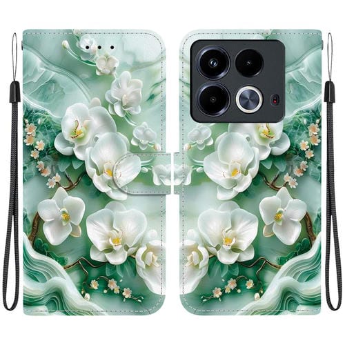 Funda de Cuero para Infinix Note 40 4G con Dibujo de Colores y Textura de Cristal (Flores de Jade)