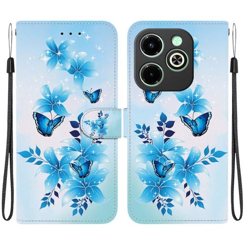 Funda de Cuero para Infinix Smart 8/HD/Hot 40I con Dibujo y Textura Cristal (Mariposas Azules)