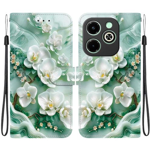 Funda de Cuero con Dibujo y Textura de Cristal para Infinix Hot 50I Smart 9 (Flores de Jade)