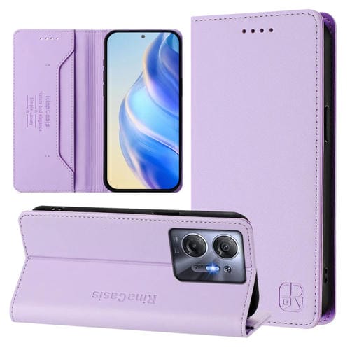 Funda de Cuero con Doble Pliegue y Succión Magnética Rfid para Infinix Hot 30 5G Rc01 (Morado Claro)