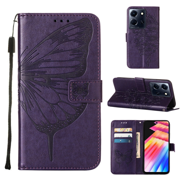 Estuche para Teléfono Infinix Note 30 5G X6711 Cuero Mariposa En Relieve (Púrpura Oscuro)