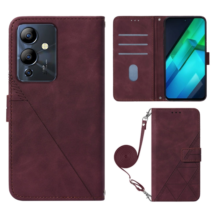 Funda de Cuero Crossbody 3D para Infinix Hot 30I / X669 con Tapa En Relieve (Rojo Vino)