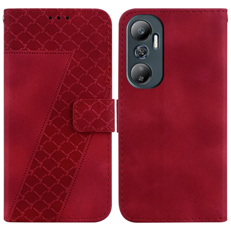 Funda de Teléfono Cuero En Relieve En Forma de 7 para Infinix Hot 20 (Rojo)