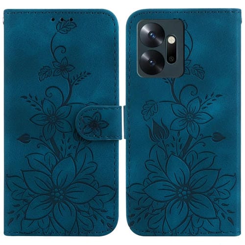 Funda de Cuero En Relieve para Infinix Hot 20 5G Lily para Teléfono (Azul Oscuro)