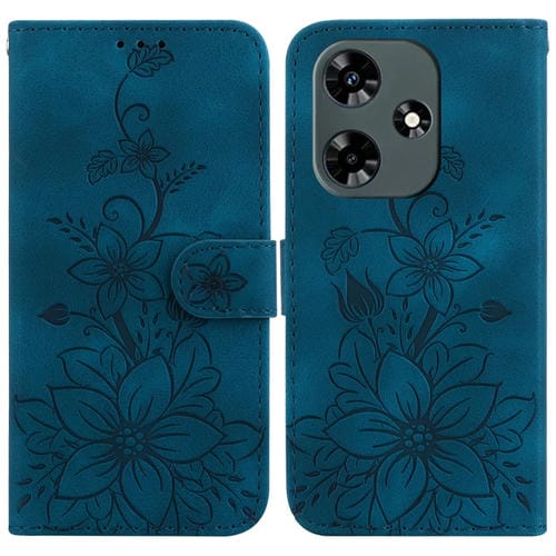 Funda de Cuero En Relieve para Infinix Hot 12I Lily para Teléfono (Azul Oscuro)